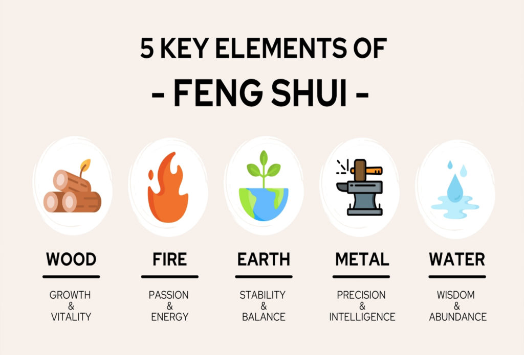 Feng shui interior design also emphasises the equilibrium between the five forces of nature – Wood, Fire, Earth, Metal, and Water. Wood represents growth, Fire represents motivation, Earth represents stability, Metal represents focus, and Water represents emotions. Thus, interior designers place objects representing these elements to attract the right energies in the space. For instance, hearing the soothing sound of a water fountain or watching fish swim in an aquarium promotes a sense of calmness and also helps to increase cash flow.